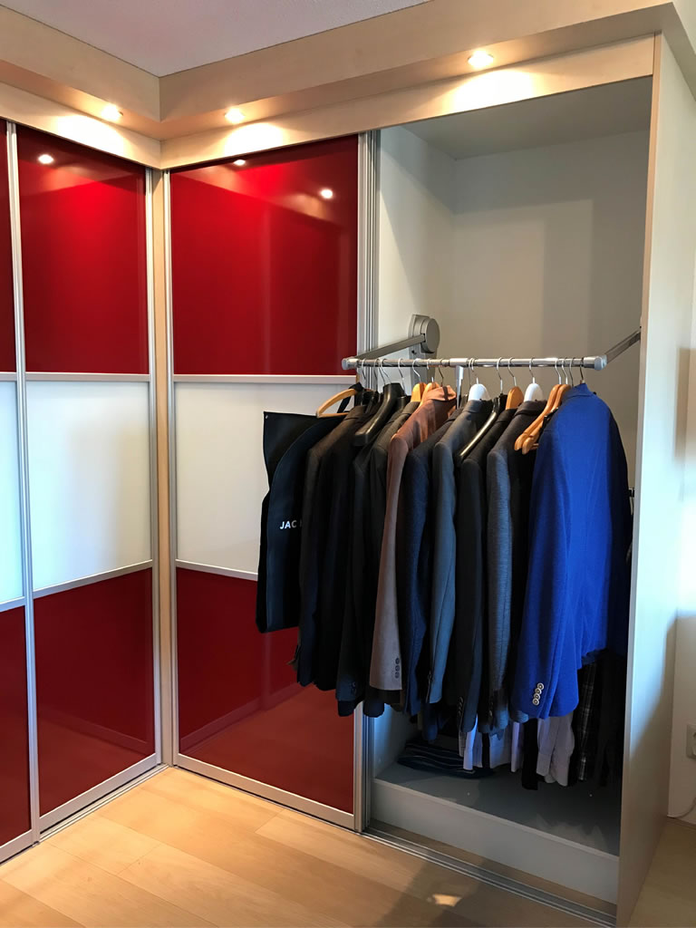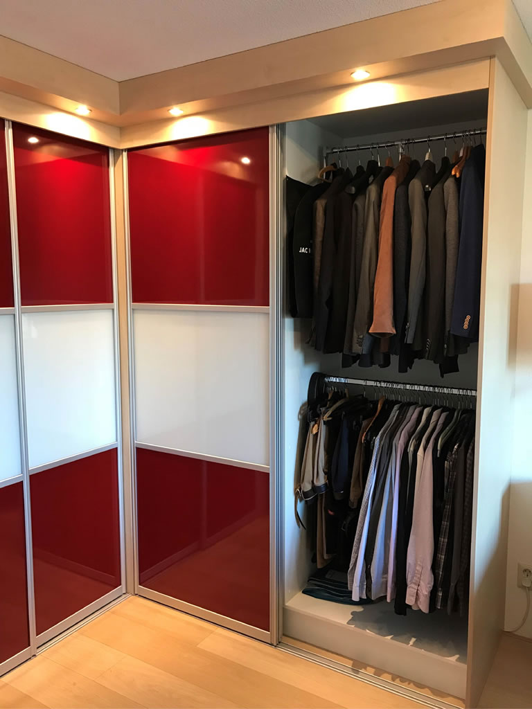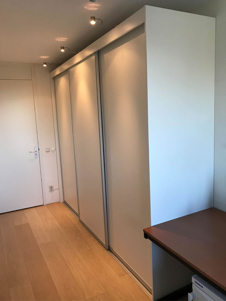 Op de logeerkamer hebben we een linnenkast gemaakt, voorzien van schuifdeuren en verlichting.